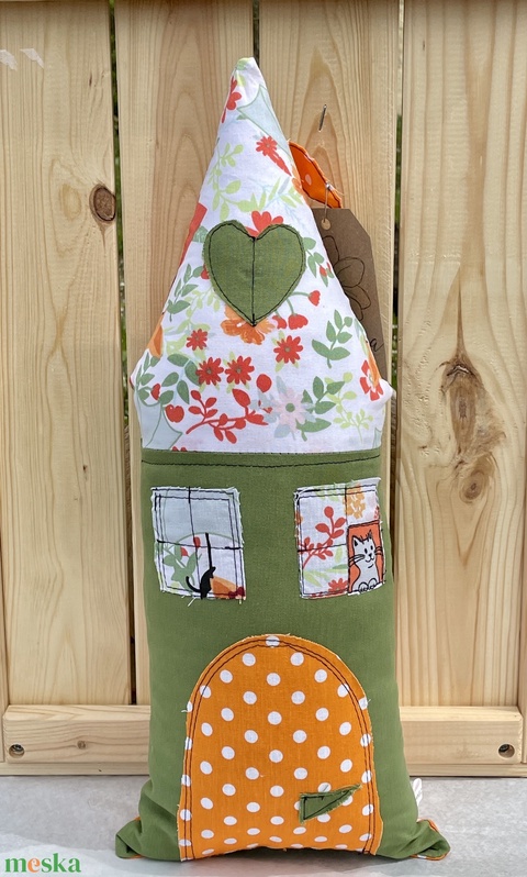 - 100% pamutvászon anyagból készítettem, az anyagot használat előtt beavattam; a töltetet egy belső rétegbe varrtam, így az garantáltan a házikó belsejében marad, és mivel nincs rajta leszedhető rész, biztonságos a kisebb gyerekek számára is.