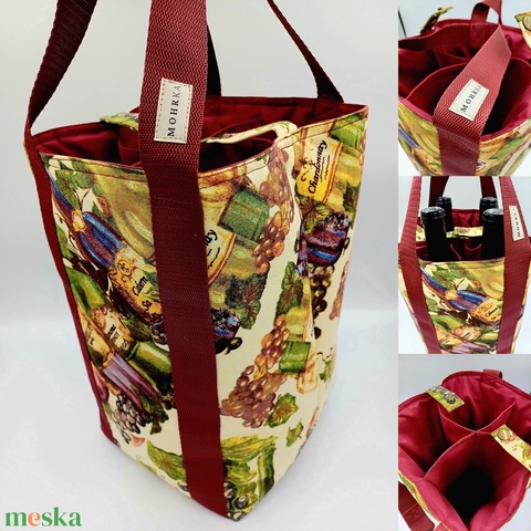 Bortartó 4 rekeszes táska, szőlő mintával