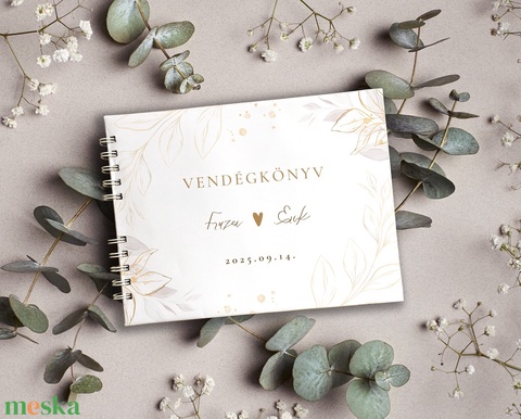 Letisztult, modern levélmintás esküvői vendégkönyv, fotóalbum