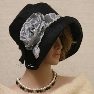 DERBY-LUX - exkluzív kézzel festett selyem düsessz kalap / lila, sárga