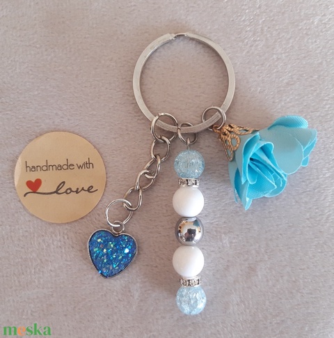 Csillogó szíves kulcstartó, Hegyikristály - Hematit - Ónix ásványszállal