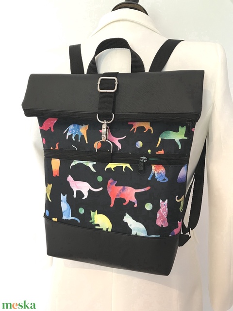 Rolltop Fekete-cica mintás-Vízálló-Hátizsák-Hátitáska