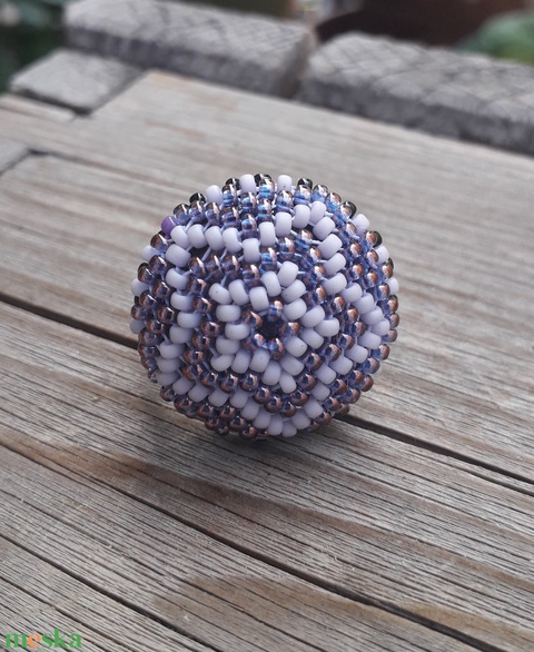 - Anyag/Összetevő gyöngyfűző cérna, gyűrű alap, cseh gyöngy, bicone gyöngy
