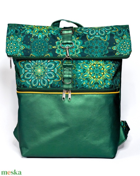 Zöld metálfényű, mandalás roll top hátizsák