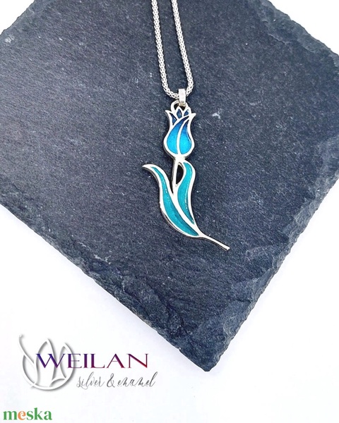 Hej'tulipán - Virágszálam ezüst tűzzománc medál kék-zöld