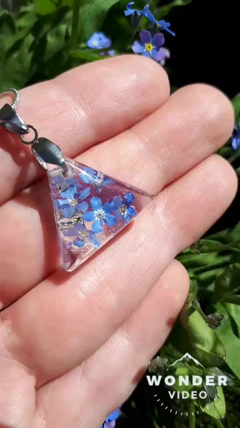 - Anyaga: ékszergyanta, szerelék, virágok, műgyanta, nefelejcs
