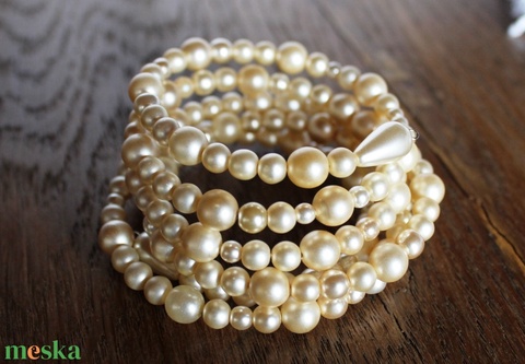 Vintage Csupagyöngy Karkötő memóriadróton Méret: M, selyemfényű vintage tekla gyöngyökből