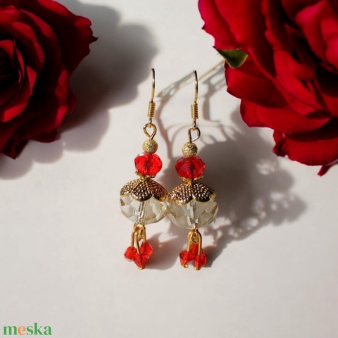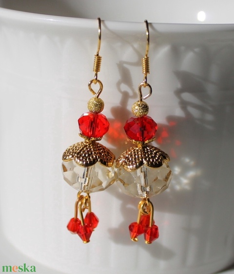 Arany piros gyöngyös fülbevaló menyasszonyoknak menyecske ruhához is!
