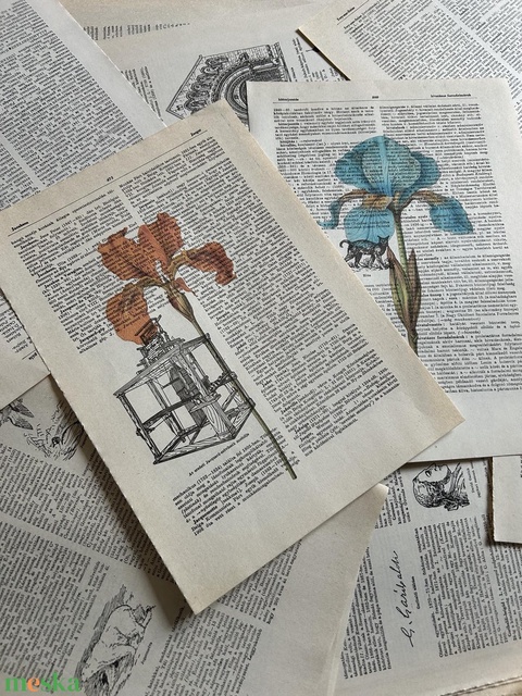 Virág, botanikus, nőszirom, kép, dekoráció, könyvlap, vintage