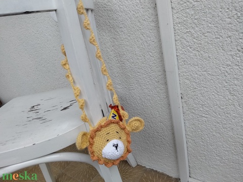 Oroszlános, nyakba akasztható horgolt kis táska apró "kincseknek", a pöttömök számára