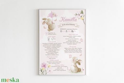 Nyuszis, virágos, rózsaszín babaposzter