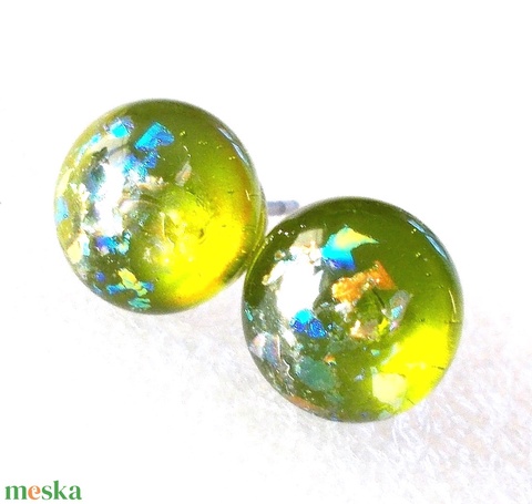 AKCIÓ! Lime fényjáték, stiftes üveg fülbevaló , ajándék névnapra, születésnapra.