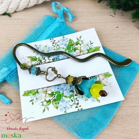 Türkiz-sárga virág könyvjelző egyedi ajándék ballagásra évzáróra pedagógusnak születésnapra névnapra nőnek lánynak