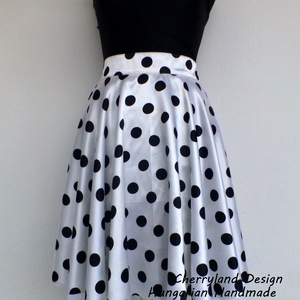 Cherryland Design Fehér alapon fekete pöttyös rockabilly szoknya.