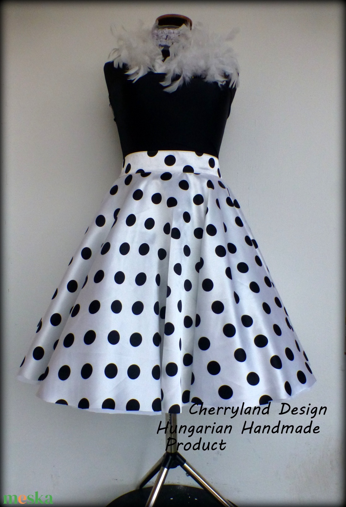 Cherryland Design Fehér alapon fekete Pöttyös Rockabilly szoknya./Alsószoknyával
