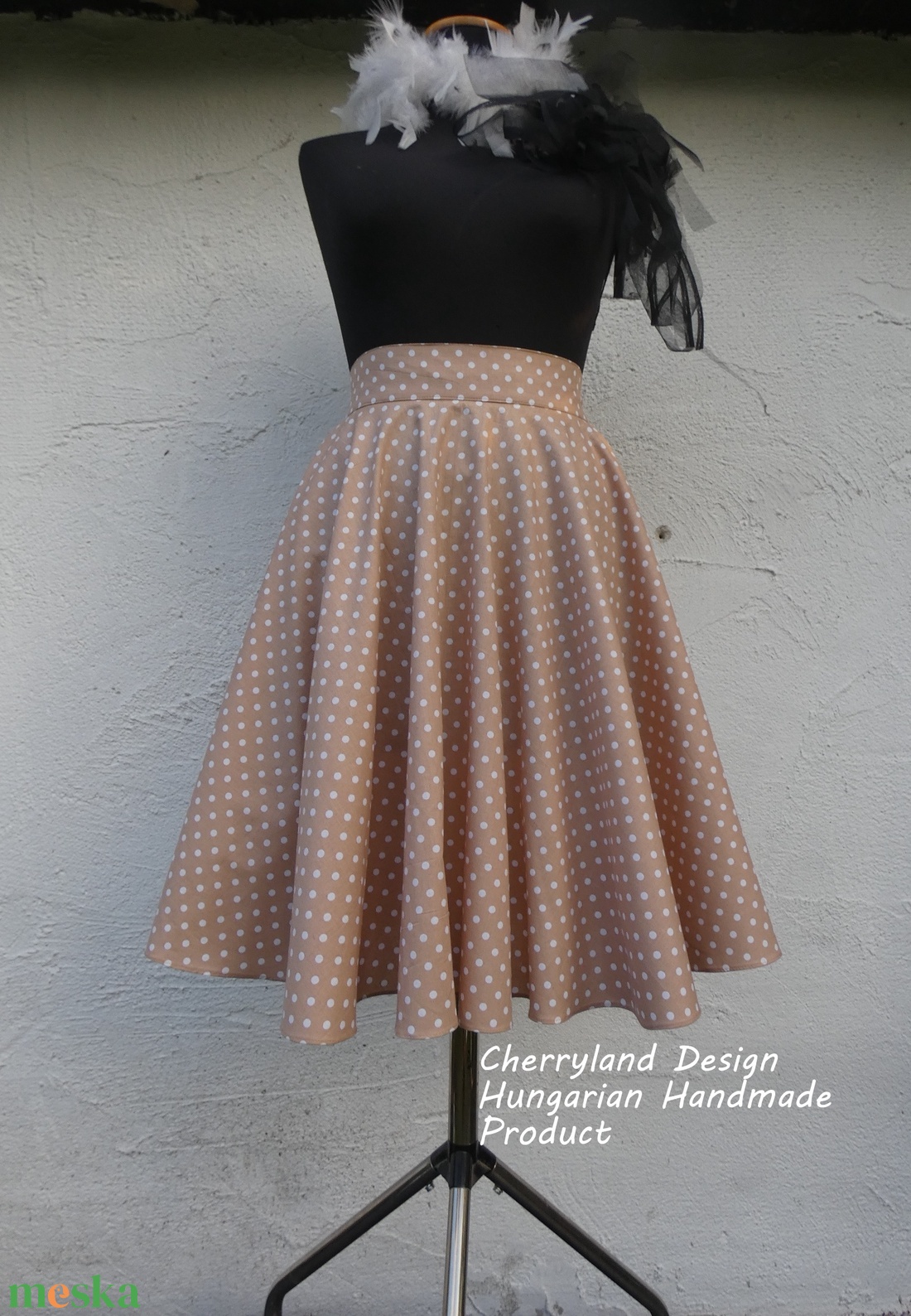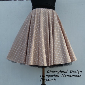 Cherryland Design Bézs-Fehér Pöttyös Rockabilly Szoknya/ Tüllös Alsószoknyával.