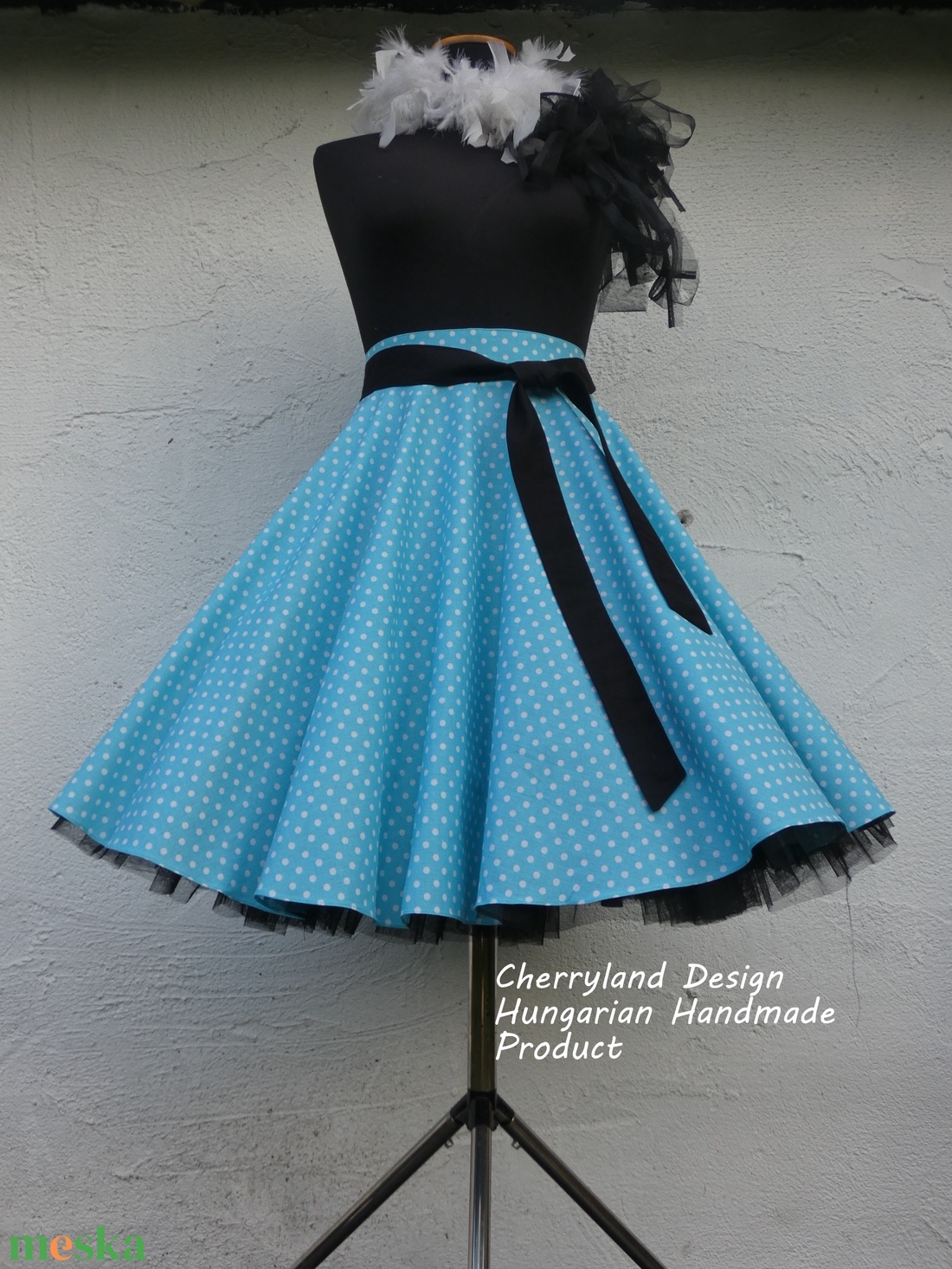 Cherryland design Kék-Fehér pöttyös rockabilly szoknya/Alsószoknya