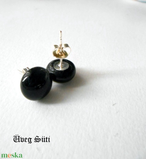 NEMESACÉL Korom fekete fülbevaló üvegékszer
