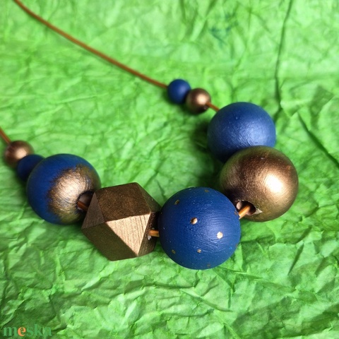 Kék-réz fa bogyós nyaklánc