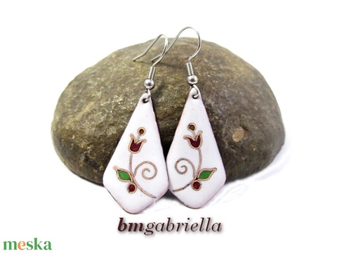 Ölelő tulipános - tűzzománc fülbevaló nemesacél akasztóval