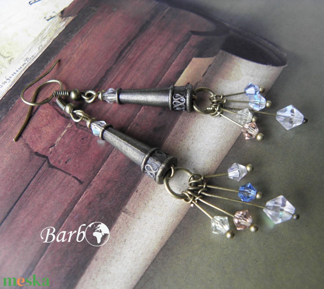 - Anyaga: üveggyöngyök, szerelőpálca, fülbevaló akasztó, antik bronz gyöngykupak