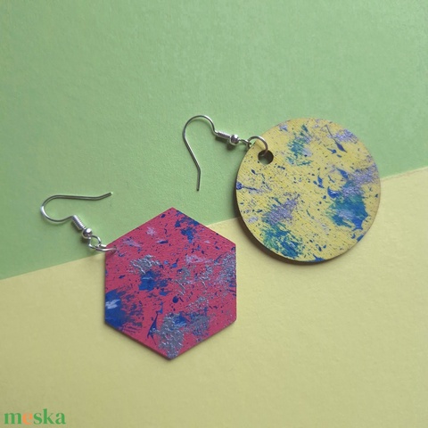 Sárga-pink fa nagy alakú mintás fülbevaló