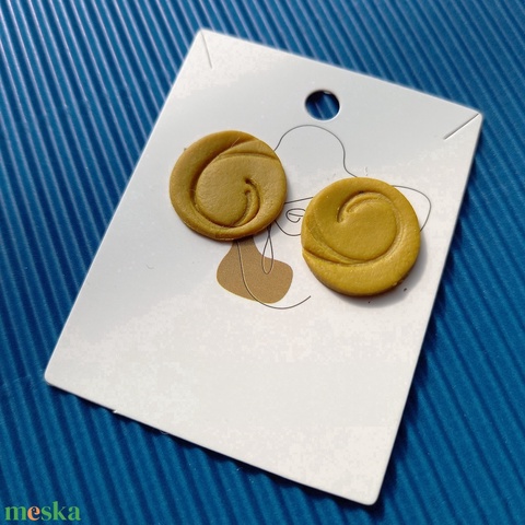Mustársárga kerek bőrhatású gyurma fülbevaló