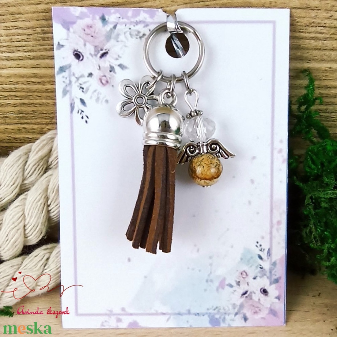 Képjáspis ásvány angyal barna bojttal virággal kulcstartó táskadísz pedagógusnapra évzáróra ballagásra
