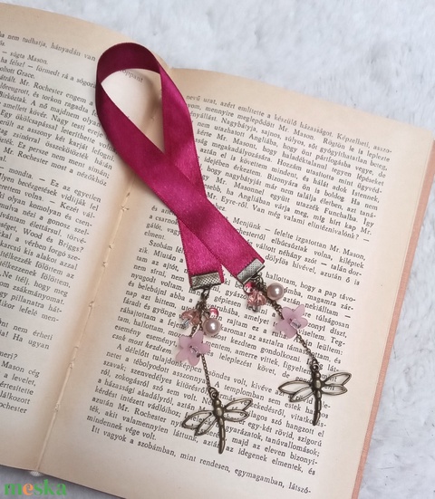 Szitakötő lilommal - bíbor szatén könyvjelző - 7/5
