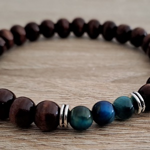 Férfi fa karkötő kék tigrisszemmel