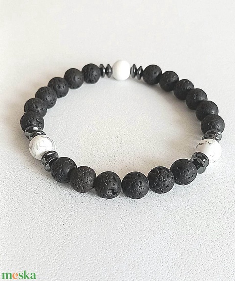 - Anyaga: 8-as lávakő és howlit, hematit köztes elem