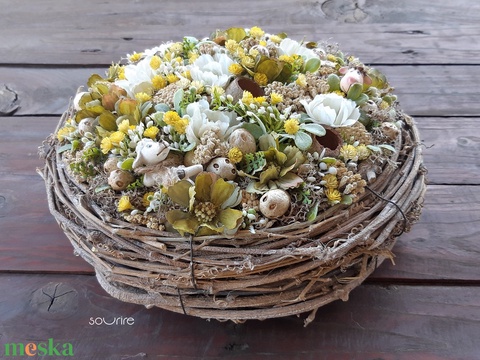 - Anyaga: természetes koszorú, selyemvirág, műanyag virág, bárány figurák, szárított izlandi zúzmó, termés, szárított virág, oázis, textil
