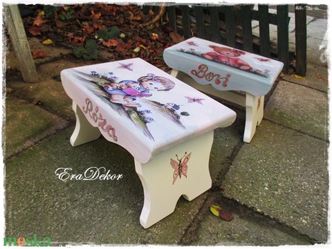 gyerekszoba bútorok, romantikus antikolt festéssel készült fa ajándéktárgyak a provence-i stílus jegyében