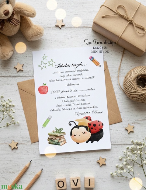 Emeld ki az ovis vagy bölcsis ballagás ünnepét ezzel az elegáns, egyedi katicás ballagási meghívóval! Tökéletes választás, ha szeretnétek stílusosan meghívni szeretteiteket az emlékezetes eseményre.