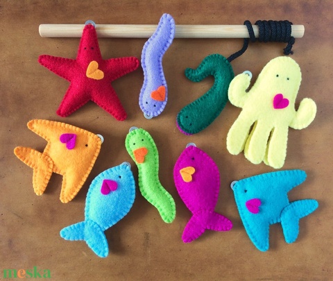 Filip a polip és barátai, Mágneses filc horgászjáték, 9 darabos színes készlet