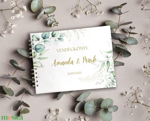 Modern greenery esküvői vendégkönyv, fotóalbum