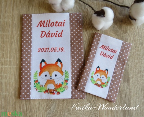Gyermek egészségügyi könyv borító és okmánytartó szett-róka