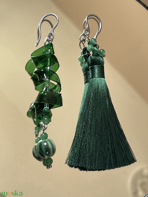 Méregzöld/ smaragd zöld felemás fülbevaló absztrakt stílusban