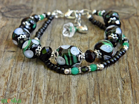 Kála - fekete fehér lámpagyöngy karkötő, klasszikus MURÁNÓI üvegékszer,