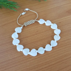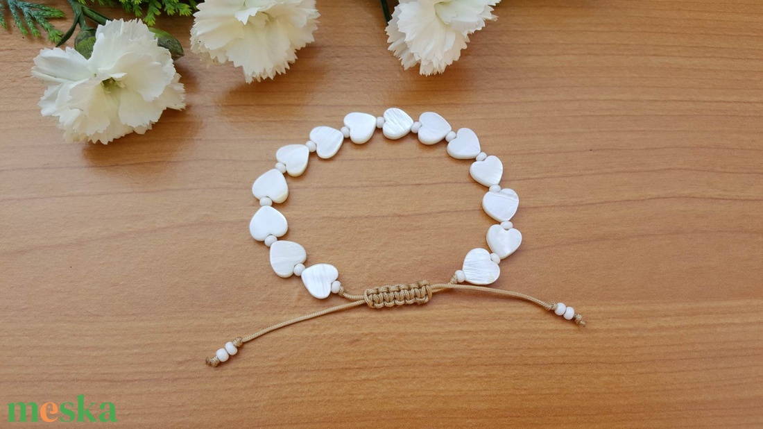 - Anyaga: szív alakú kagyló gyöngy, nylon zsinór