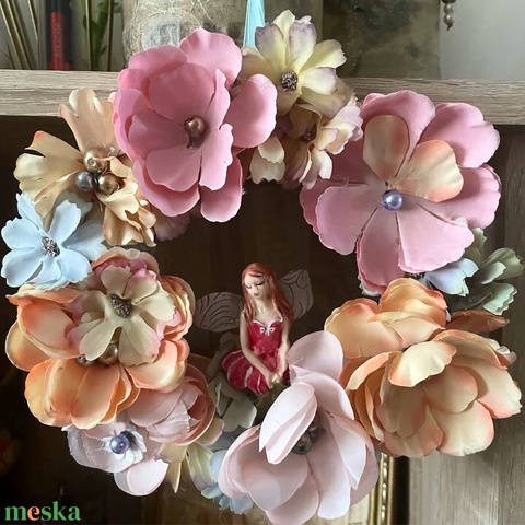 Virágos ajtódísz tündérrel