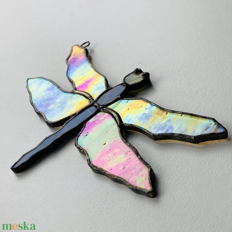 Szitakötő (szivárvány szárnyú) függő, medál - Tiffany festett üveg