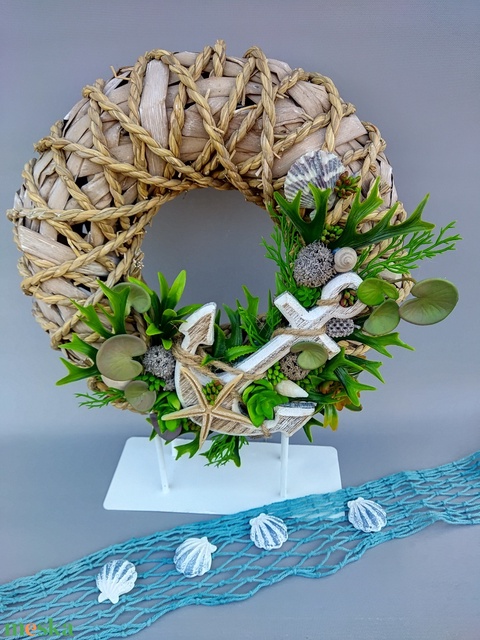 koszorú alap, műnövény, fa horgony, kagyló