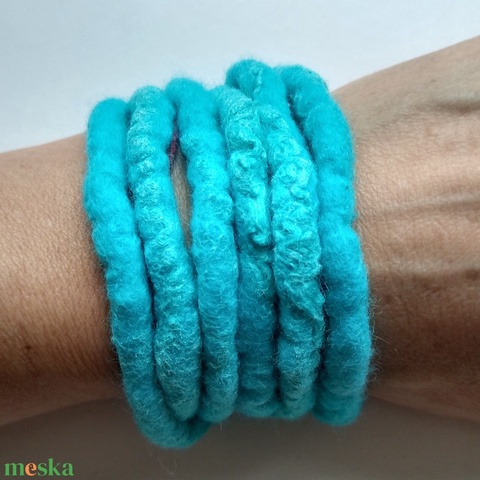Selymes türkiz nemez lánc -nemezelt karkötő, nyaklánc, bokalánc, hajdísz...