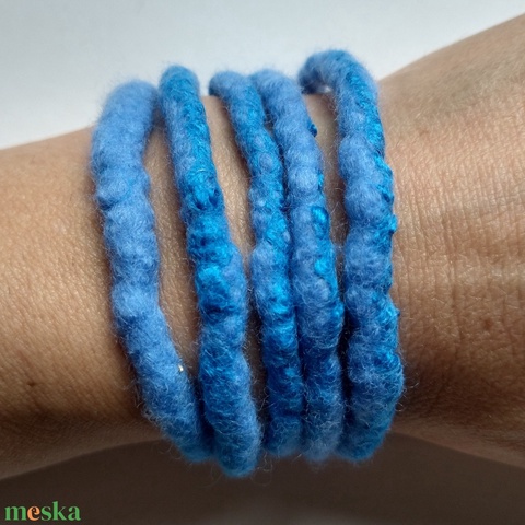 Ragyogó égkék nemez lánc -nemezelt karkötő, nyaklánc, bokalánc, hajdísz...