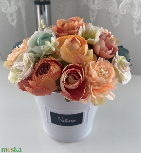 Vidám barack virágcsokor, virágbox , virágdoboz, asztaldísz