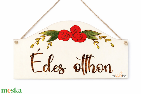 Isten hozott, édes otthon rózsás pirogravírozott kép
