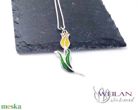 Hej'tulipán - Virágszálam ezüst tűzzománc medál narancs-arany-zöld