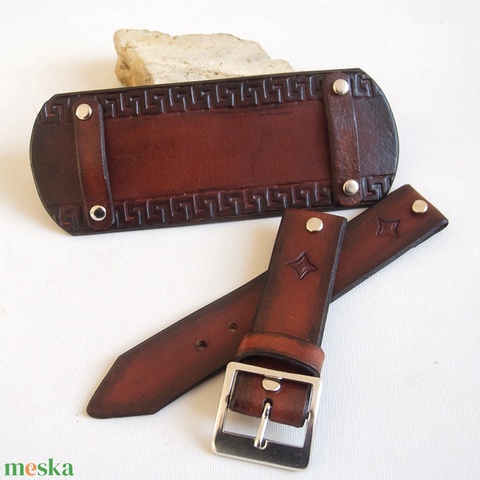Férfi marhabőr óraszíj, Görög mintás óraszíj férfiaknak, Kézműves óraszíj