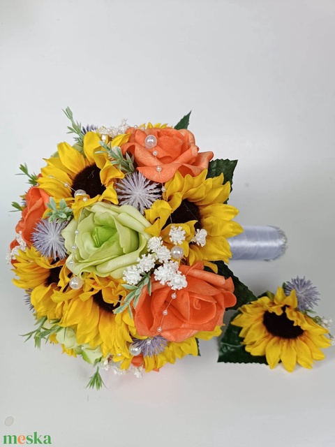 Menyasszonyi csokor, napraforgó, rózsa